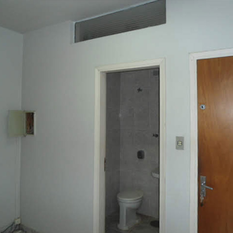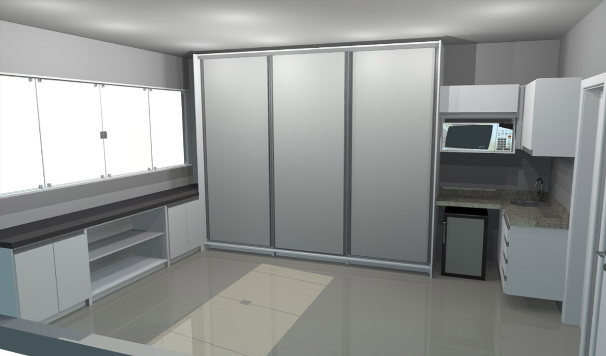 Nesse projeto foi refeita toda a parte elétrica e criados pontos de hidráulica para inserir uma pequena copa que não tinha e substituir a tubulação de hidro-sanitária. A janela em ferro totalmente enferrujada foi substituída por uma com mesma cor e modelo em alumínio.